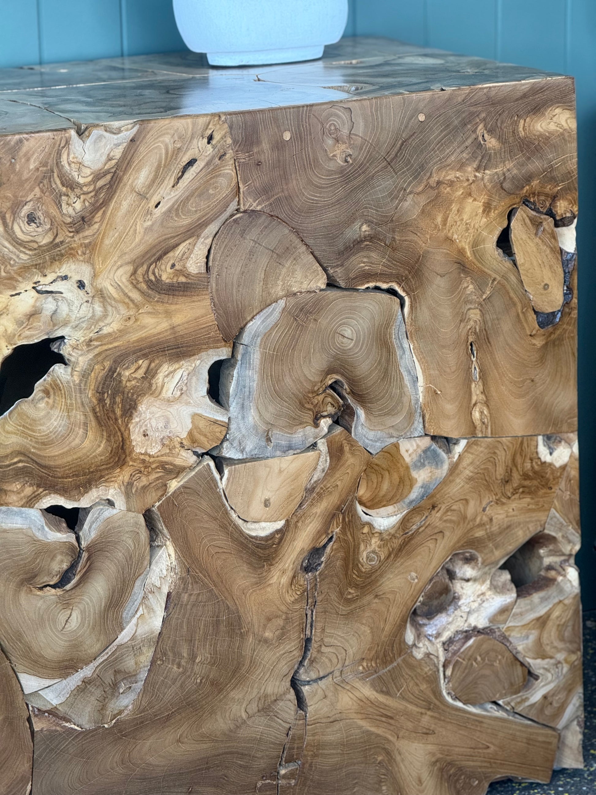 Embrace the beauty of nature with our Accent Teak Slice console table. Made from rescued teak wood, it adds a touch of texture and complements various design styles. Crafted by hand with exquisite detail, the natural wood grain and unique character make each piece one-of-a-kind.