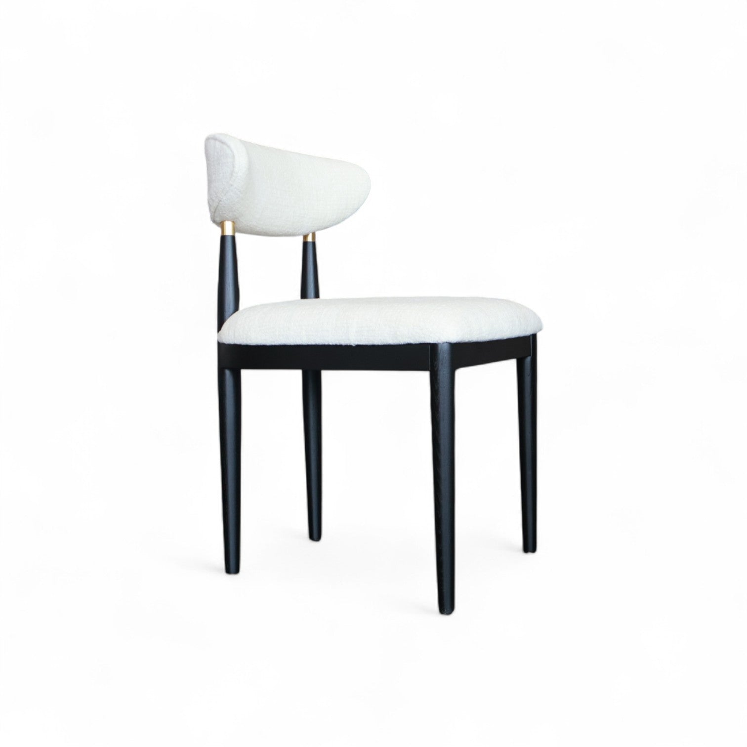 The Luna Dining Chair brings refined comfort to your dining space with its gently curved backrest, plush upholstery, and slim black timber legs. Lightweight yet sturdy, it’s built for long dinners and stylish moments. Pairs beautifully with both modern and classic interiors.