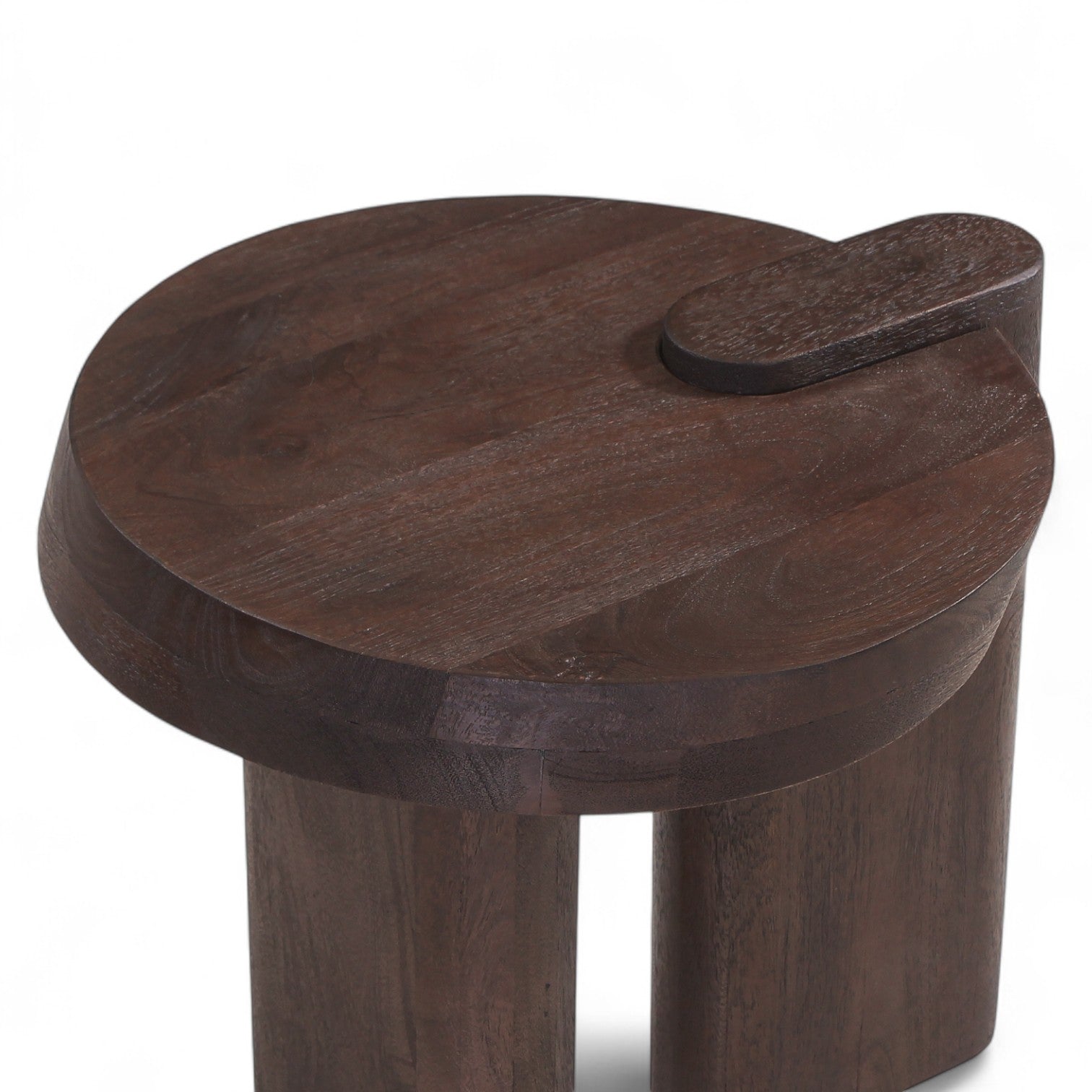 The Modera Side Table is a sculptural accent that brings bold design to any corner. Crafted from mango wood with a rich dark finish, its curved form and unique cut-out detailing give it an elevated, gallery-like presence. The round top rests on three organically shaped legs, creating a piece that’s both grounded and gracefully modern.